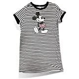 Black And Gray Striped Mickey Mouse Nightgown, Favorite Character Novelty Disney Sleepwear And Night Shirt For Juniors