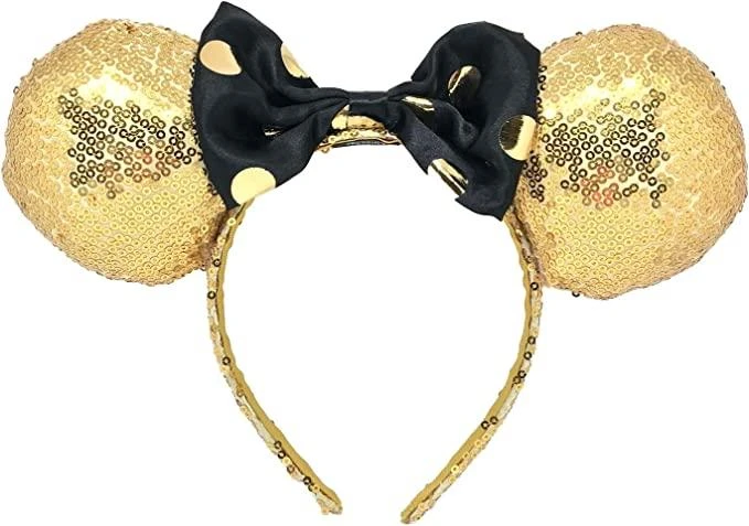 Disney Minnie Mouse Gold Sequin Ear Headband With Bow