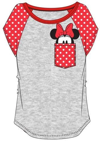 Youth Minnie Mouse Peeking Pocket Tee Shirt by Disney. This adorable short sleeve tee features raglan sleeves for fashion and comfort. The contrast color sleeves and left chest patch pocket are red with white polka dots. Minnie Mouse is printed above the pocket making it appear she is peeking out of the pocket. The shirt is smooth and soft and has a curved bottom hem for a trendy untucked finish. Available in Light Grey, Large 10/12, Medium 7/8, Small 6/6X, XS 4/5 Walmart marketplace seller BeltOutlet specializes in sale-priced T-Shirts and clothing accessories for men, women and children. We carry quality belts, wallets, headwear, cold weather accessories including T-Shirts for Kids. Many items have reduced or rollback prices and most orders ship within one business day.