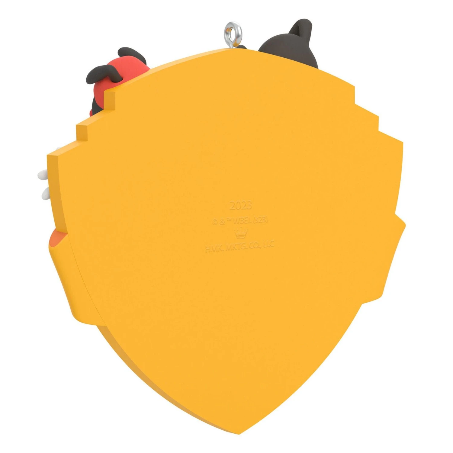 Relive the zany antics of the Animaniacs and celebrate the 30th anniversary of the wacky and witty characters with this Christmas tree ornament that features Yakko, Wakko and Dot. The energetic Warner brothers—and the Warner sister!—burst from their iconic shield icon in this colorful decoration that gives a fun nod to the clever cartoon’s opening scene.