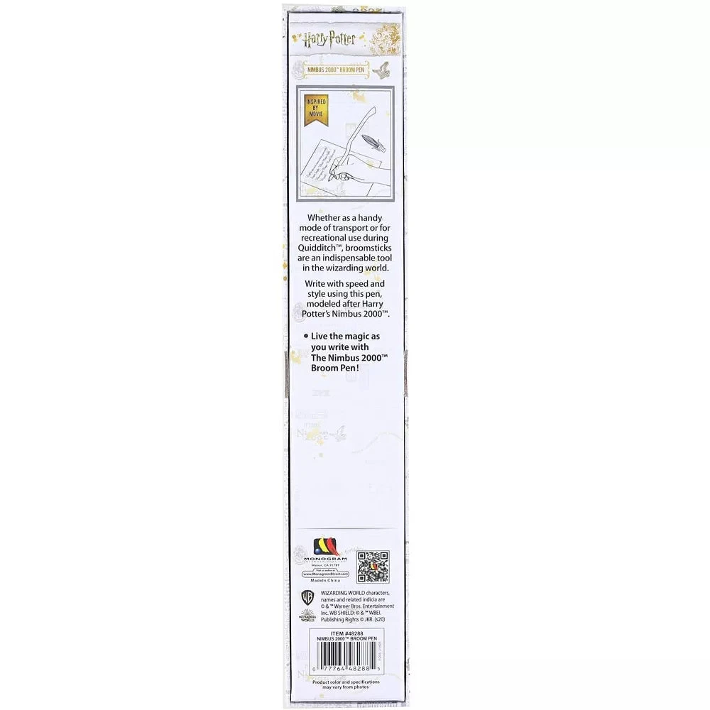 Bring a bit of magic to your everyday writing tasks with this officially-licensed Harry Potter Nimbus 2000 Flying Broomstick Pen! A creative stationery item for any collection, this pen is perfect for jotting down notes in History of Magic classes or adding a touch of whimsy to any meeting. Give it as a gift or keep it for yourself! Produced by Monogram International.