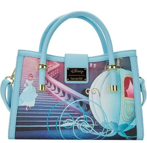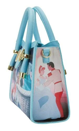 The Loungefly Cinderella Princess Scenes Crossbody Bag is made of vegan leather (polyurethane). Bag has an adjustable shoulder strap (detachable) and sturdy metal hardware. Additional features include a molded metal rivet and printed details. Take note of the coordinating inside lining.