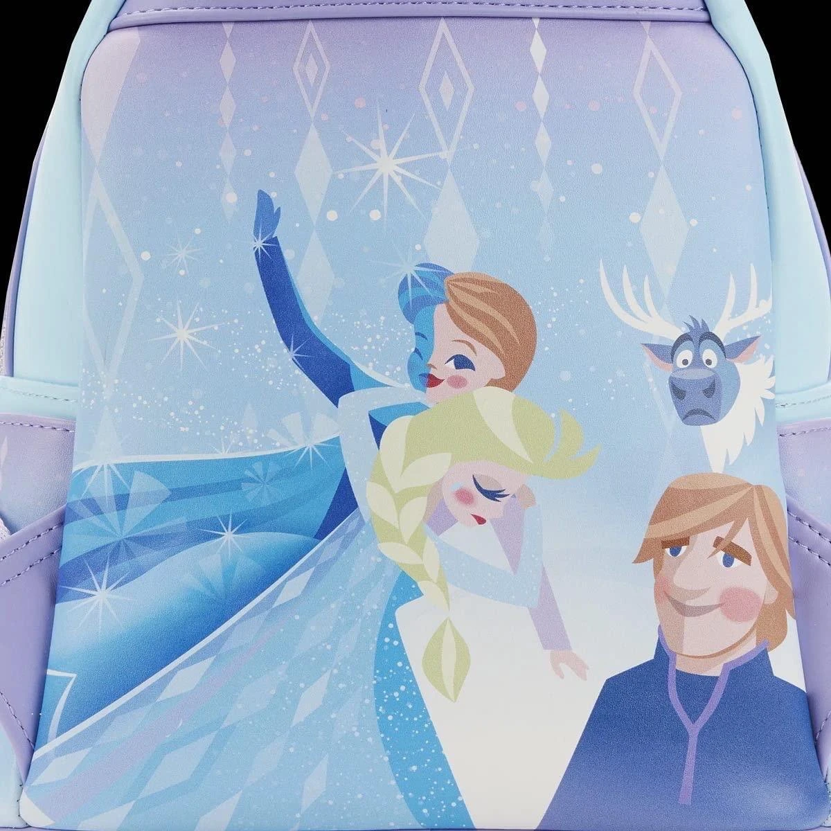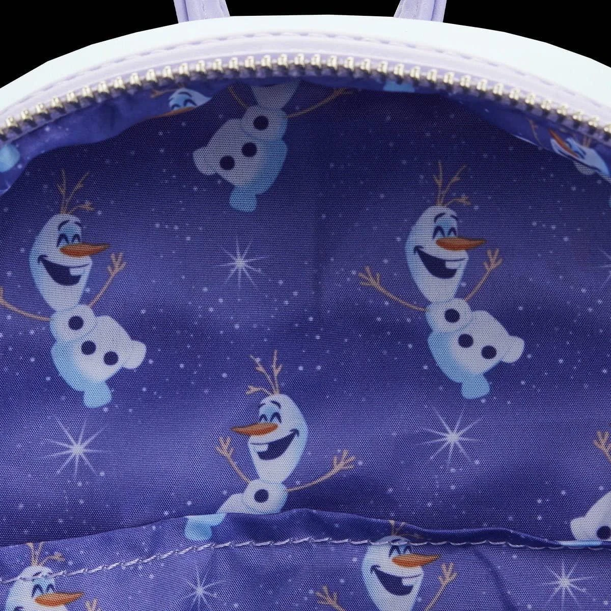 Glide along a shimmering frozen wonderland with Olaf on this Frozen Queen Elsa Castle Mini Backpack. On the front, Olaf slides on the ice in front of the sparkling palace, which rises up over the top of the backpack and glimmers with iridescent silver foil detail. On the back, Elsa, Anna, Kristoff, and Sven make an appearance. This accessory complements any Disney outfit and is perfect for fans who are looking to keep their favorite animated moments close.