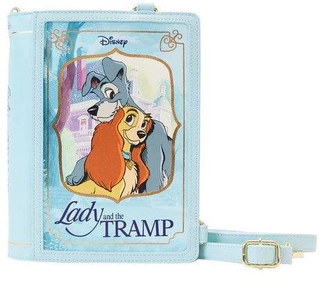 Celebrate a story of puppy love! The Loungefly Lady and the Tramp Book Convertible Crossbody Bag brings a charming interpretation to the animated classic. Resembling a book cover, the front of this bag features Lady and her beloved Tramp surrounded in a metallic frame. The movie’s title appears along the book’s front and “spine,” while the couple’s pups appear on the back. Open the bag to find storybook-like artwork of Lady and the Tramp’s adventures. Easily convertible, this bag can transform into a backpack with the book lying open against your back or can be worn closed as a crossbody purse. With secure zipper pockets disguised as book pages, this multi-function bag is the perfect accessory for hitting the town.