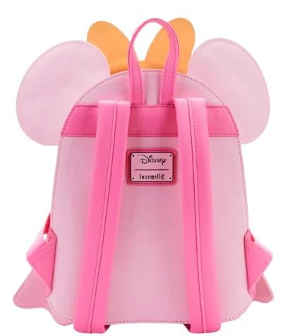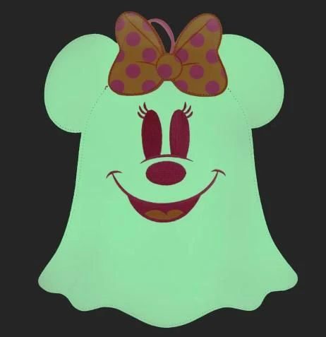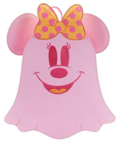 Boo-tiful adventures await with this Loungefly Disney Pastel Ghost Minnie Mouse Glow-in-the-Dark Mini Backpack. Pack just what you need for any spirited trip. On the front of this figural backpack, applique details bring Minnie Mouse, as a pink ghost, to life. Her otherworldly ears stick up over the top of the backpack, and an orange bow, sprinkled with pink polka dots, adds a terrific twist to Minnie Mouse’s classic look. Turn out the lights, and Ghost Minnie Mouse glows in a glorious green color. It’s the perfect accessory for a ghost tour—or for visiting any of your daily haunts.