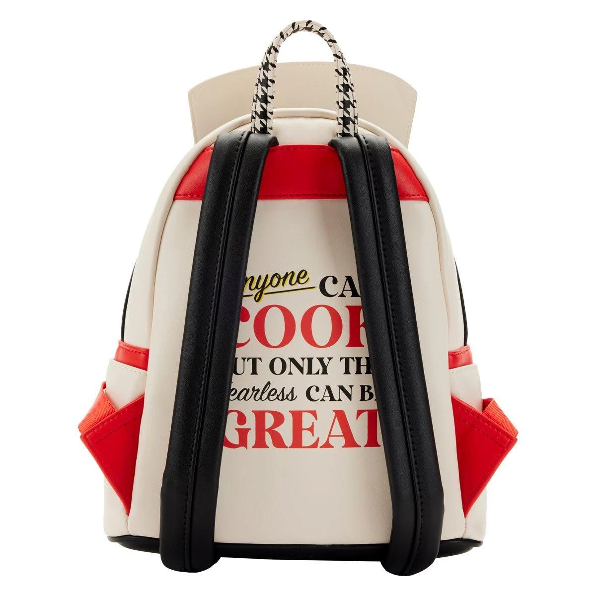 Sumptuous delights are simmering in the kitchen, and the secret to the sauce is under a hat. Capture your favorite animated cooking scenes and show your love for culinary treats with this Loungefly Disney-Pixar Ratatouille 15th Anniversary Linguini Cosplay Mini Backpack. On the front of this backpack, the top of Linguini’s head peaks out, his applique chef’s hat extending beyond the borders of the backpack dome. Turn the lights off, and the secret to Linguini’s success is revealed: Remy’s shape glows from underneath! A hidden pocket is nestled behind Linguini’s hair, topped off with an enamel zipper charm of a wedge of cheese—just for Remy. A side pocket features an adorable print of a wooden spoon and fork. On the back, a debossed message reads, “Anyone can cook, but only the fearless can be great.” This backpack is the perfect accessory for pairing with a Disney outfit, or for turning any outing into a magical and special occasion.