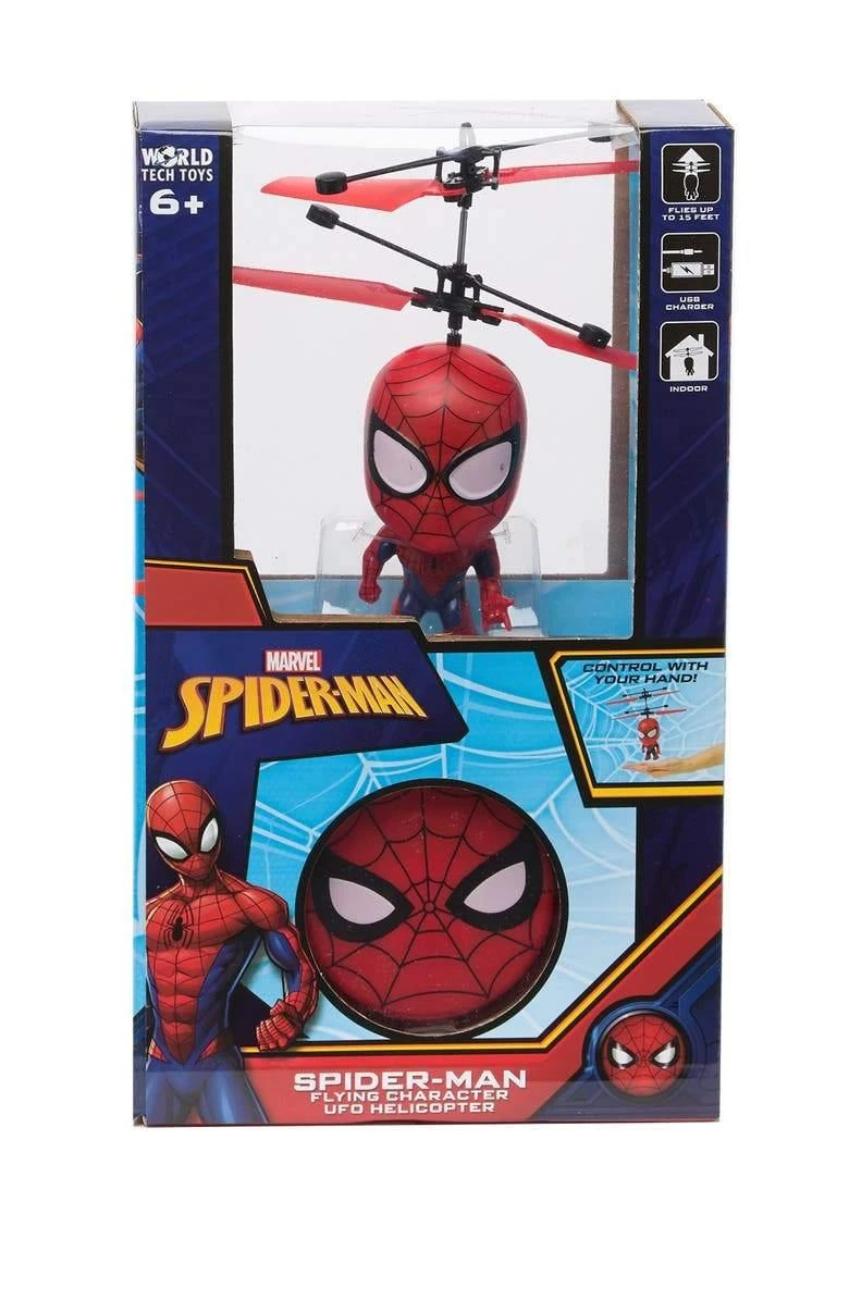 Introducing the Marvel Licensed Spider-Man 3.5 Inch Flying Figure IR UFO Big Head Helicopter! Save New York City with the friendly neighborhood Spider-Man big head helicopter featuring a coaxial rotor system for precise movement and increased stability when hovering. The UFO Big Head Helicopters body is also constructed with a durable material making it strong yet lightweight so you don’t have to worry about breaking anything when it lands a bit too rough. Using infrared motion sensitive technology, the UFO big head will detect nearby objects and is programmed to move away from them. Simply turn on and launch to get started, holding your hand underneath it will keep it hovering up in the air. When done flying you can try and grab it but you can also use the included remote control to shut down and recover safely, it’s that easy! A must have for fans of helicopters, get the Marvel Licensed Spider-Man 3.5 Inch Flying Figure IR UFO Big Head Helicopter today!