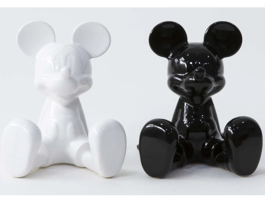 Officially licensed Mickey Mouse Sitting Salt & Pepper Shakers. These black and white “Disney” Salt & Pepper Shakers are made from ceramic and are modeled after “Mickey Mouse”.