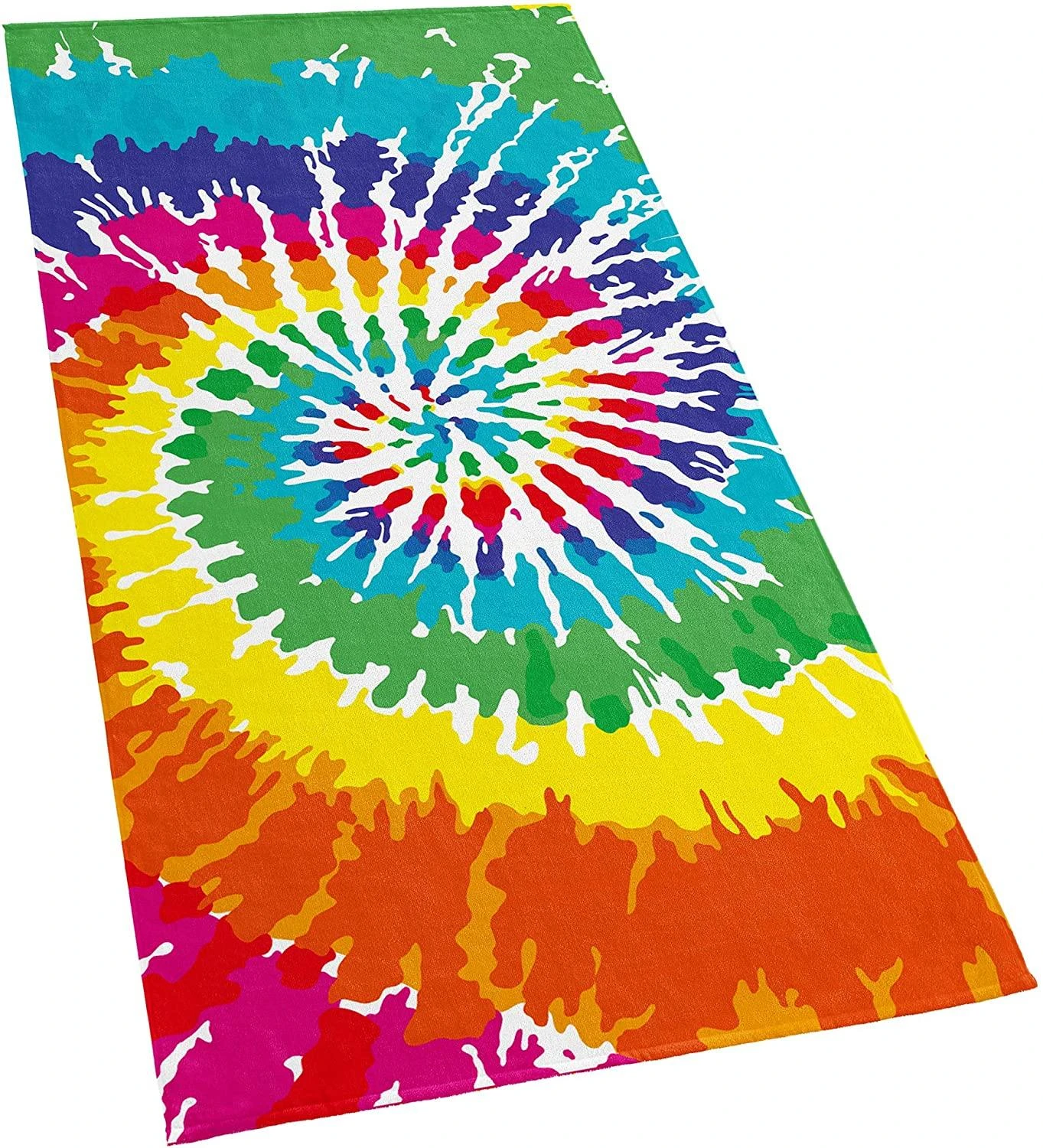 Tie Dye Beach Towel 30 X 60 Inches 100% Cotton Velour Rainbow