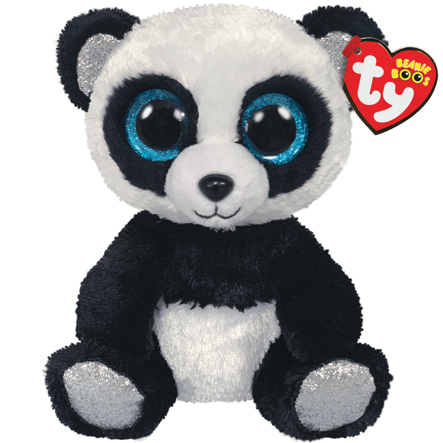 I’m a black and white Panda with blue in my ears. A Beanie Boo Panda you will treasure for years. My glittery eyes sparkle bright blue, but that’s not why they named me Bamboo. It has nothing to do with the blue on my feet. They named me Bamboo because that’s what I eat.
